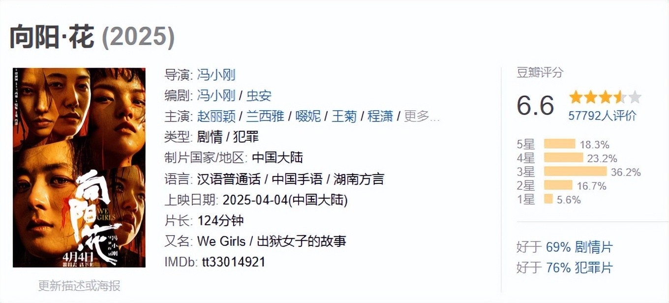 而《向阳·花》的口碑也不容乐观,豆瓣口碑仅有6.6分。